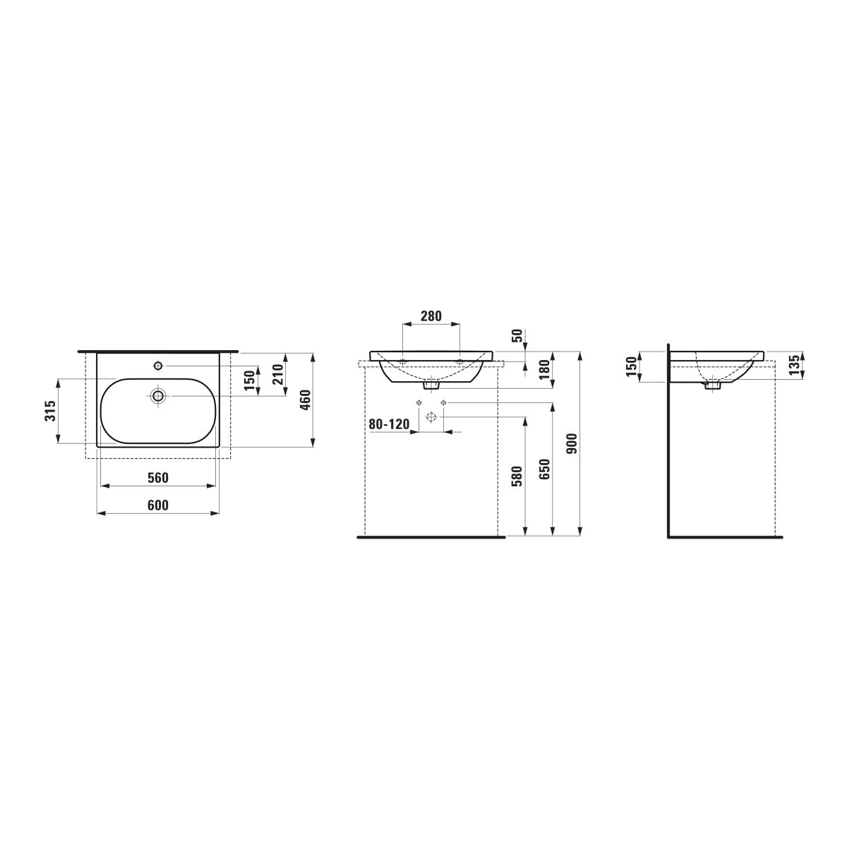 Laufen Lua Waschbecken 60x46 cm rechteckig Klassisch weiß H8160830001041