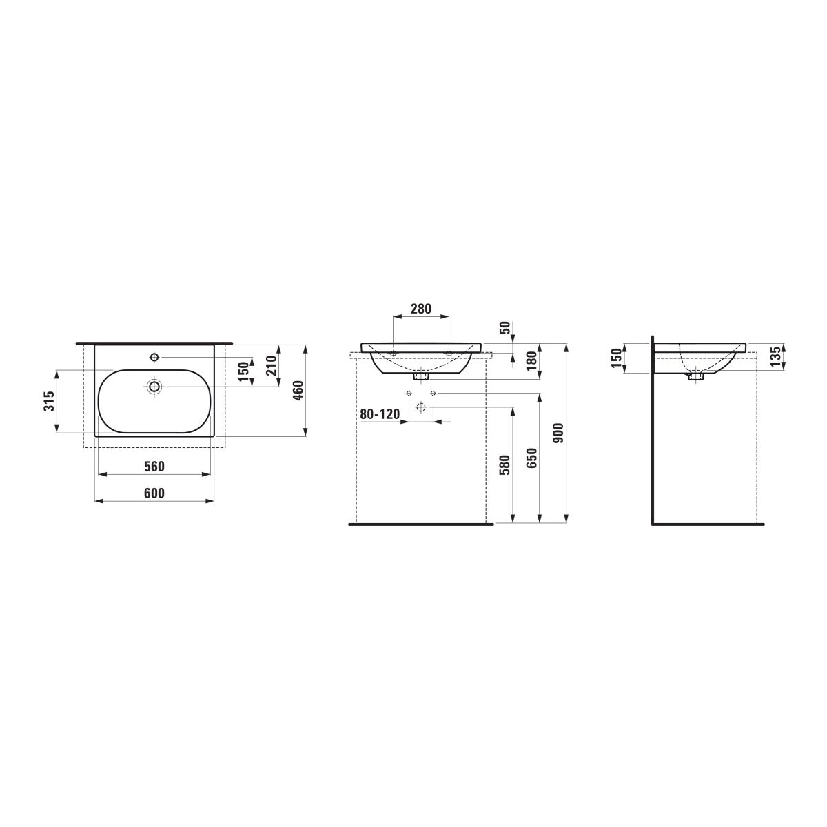 Laufen Lua Waschbecken 60x46 cm rechteckig Klassisch weiß H8160834001041