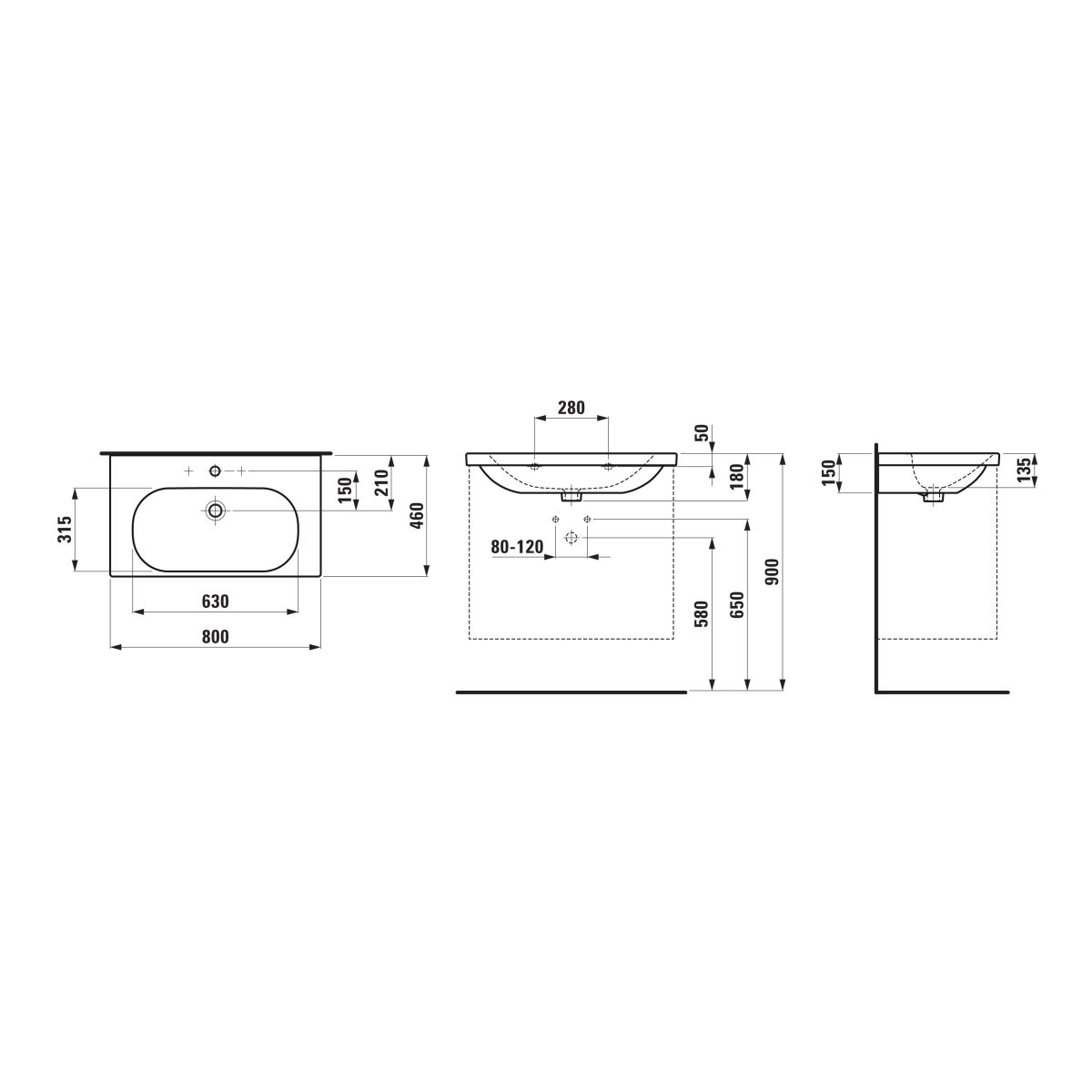 Laufen Lua Waschbecken 80x46 cm rechteckig Klassisch weiß H8100874001041