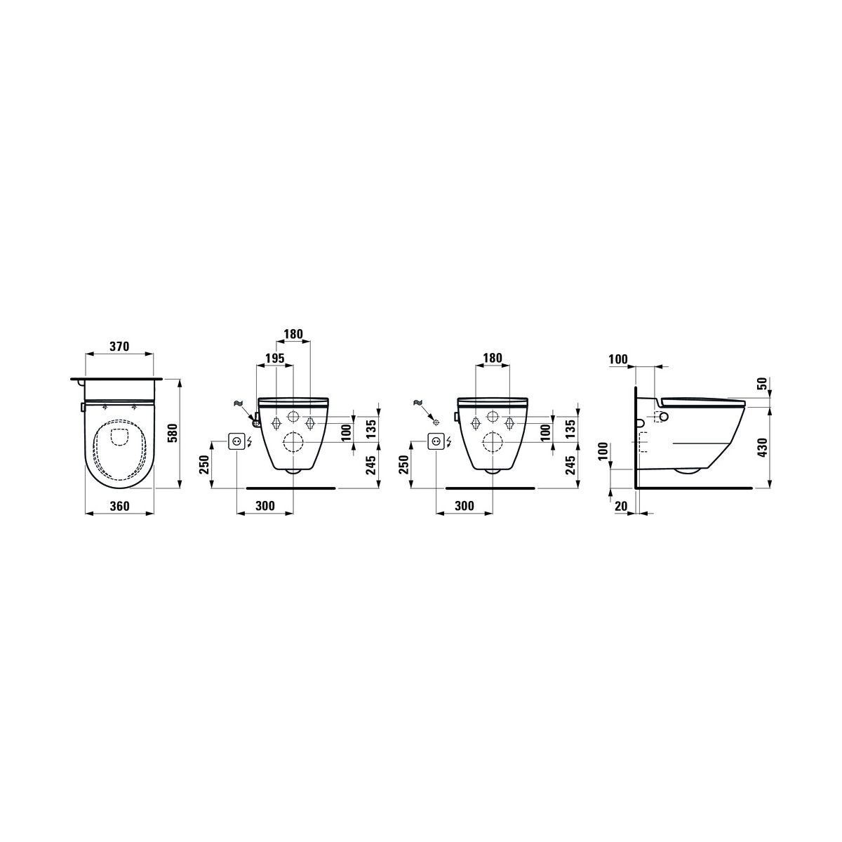 - Bedienfeld: Drehknopf an der Seite der Toilette, Fernbedienung