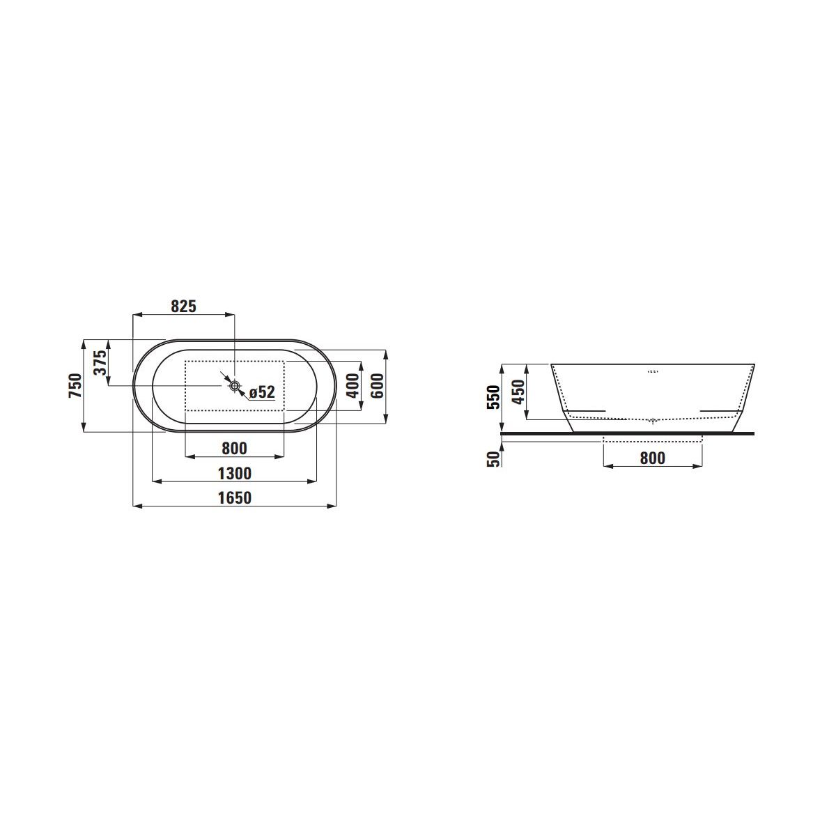 Laufen Pro Freistehende Badewanne 165x75 cm oval weiß-schwarz H2399520640001