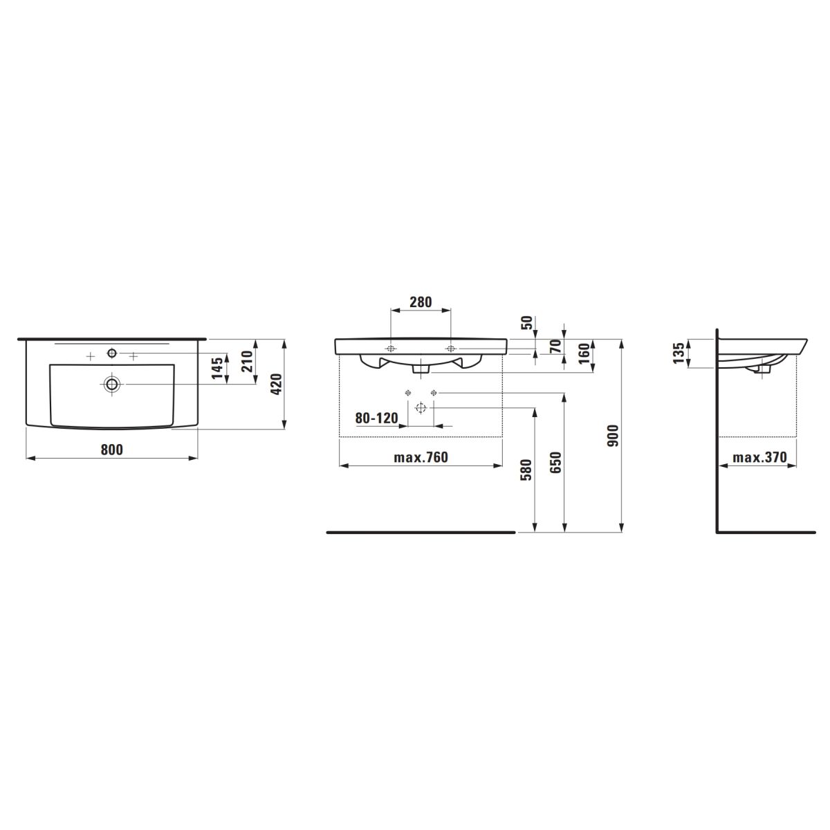 Laufen Pro N Waschbecken 80x42 cm rechteckig Klassisch weiß H8109570001041