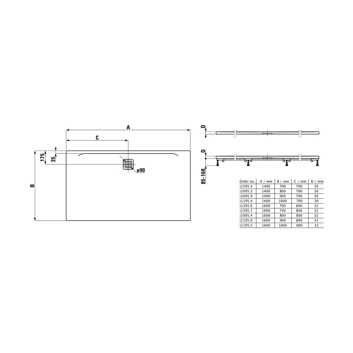 - mit Abfluss an der Längsseite