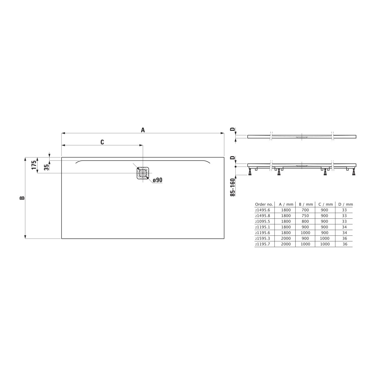 Laufen Pro Rechteckige Duschwanne 180x90 cm beton H2119510790001