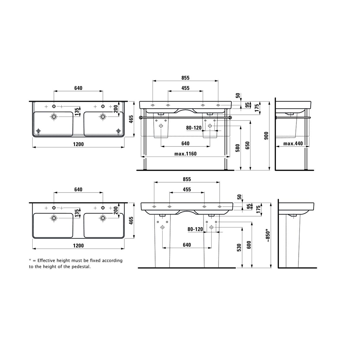 Laufen Pro S Waschbecken 120x46 cm rechteckig Klassisch-Doppelt weiß H8149660001041
