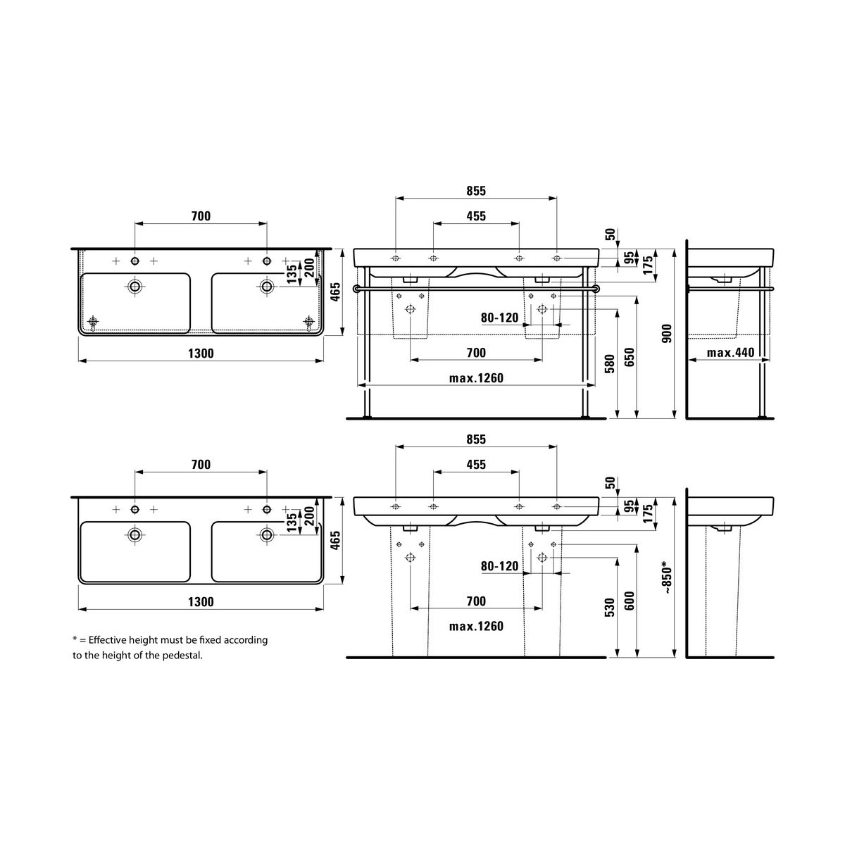 Laufen Pro S Waschbecken 130x46 cm rechteckig Klassisch-Doppelt weiß H8149680001041