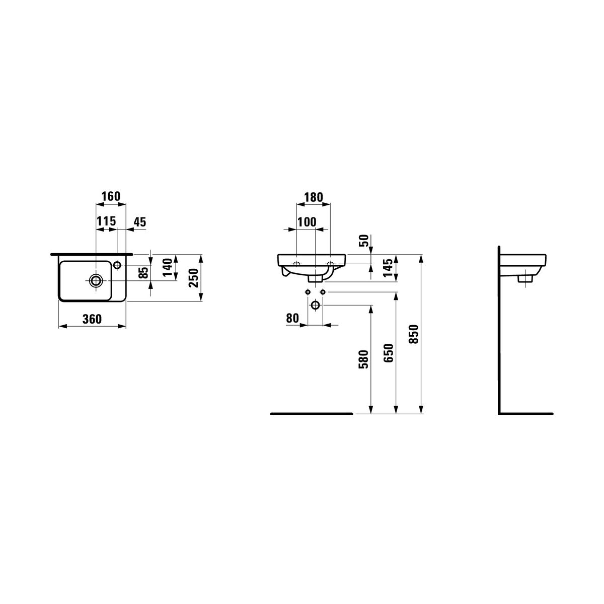 Laufen Pro S Waschbecken 36x25 cm rechteckig Klassisch weiß H8159600001041