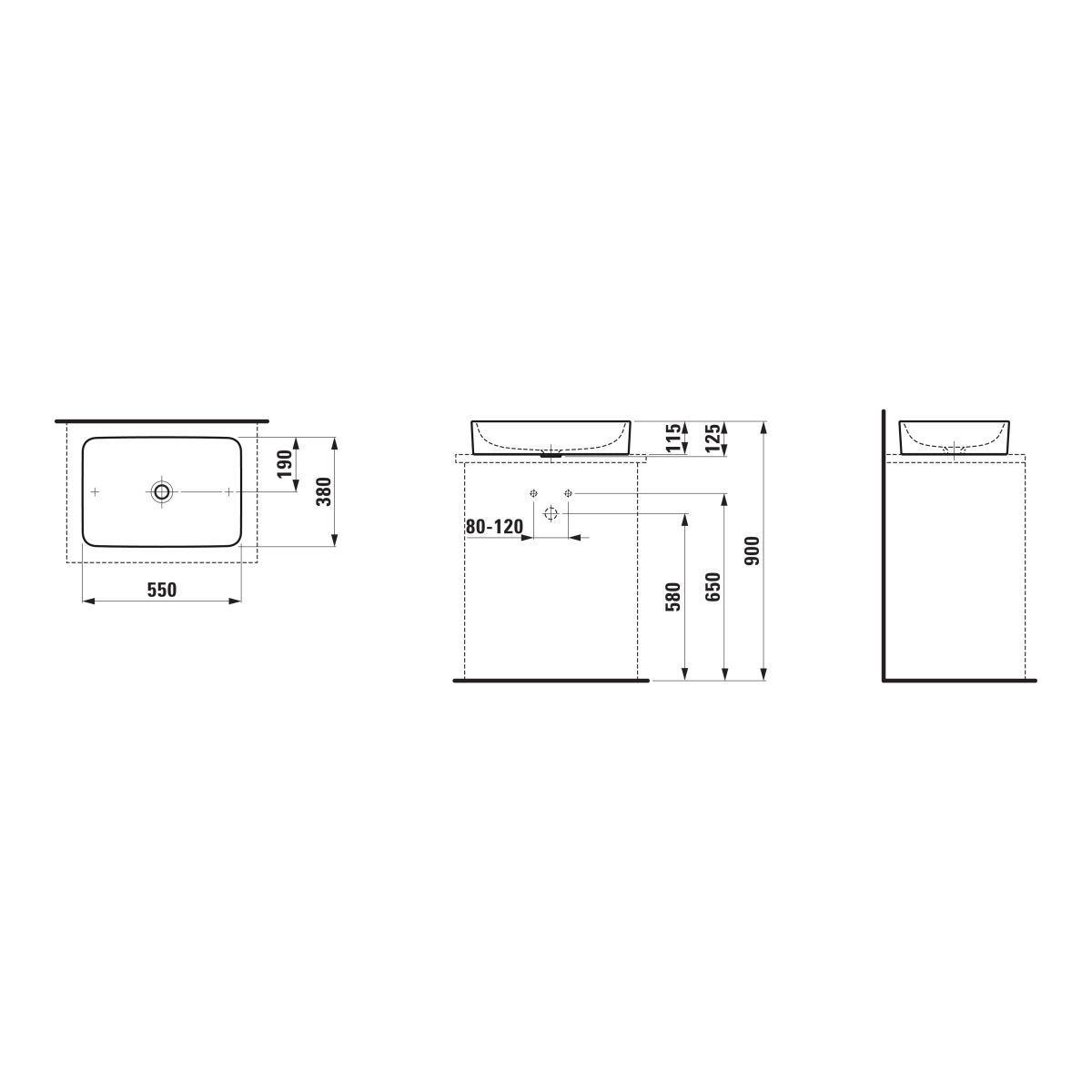 Laufen Pro S Waschbecken 55x38 cm rechteckig Aufsatzwaschbecken weiß H8129654001121
