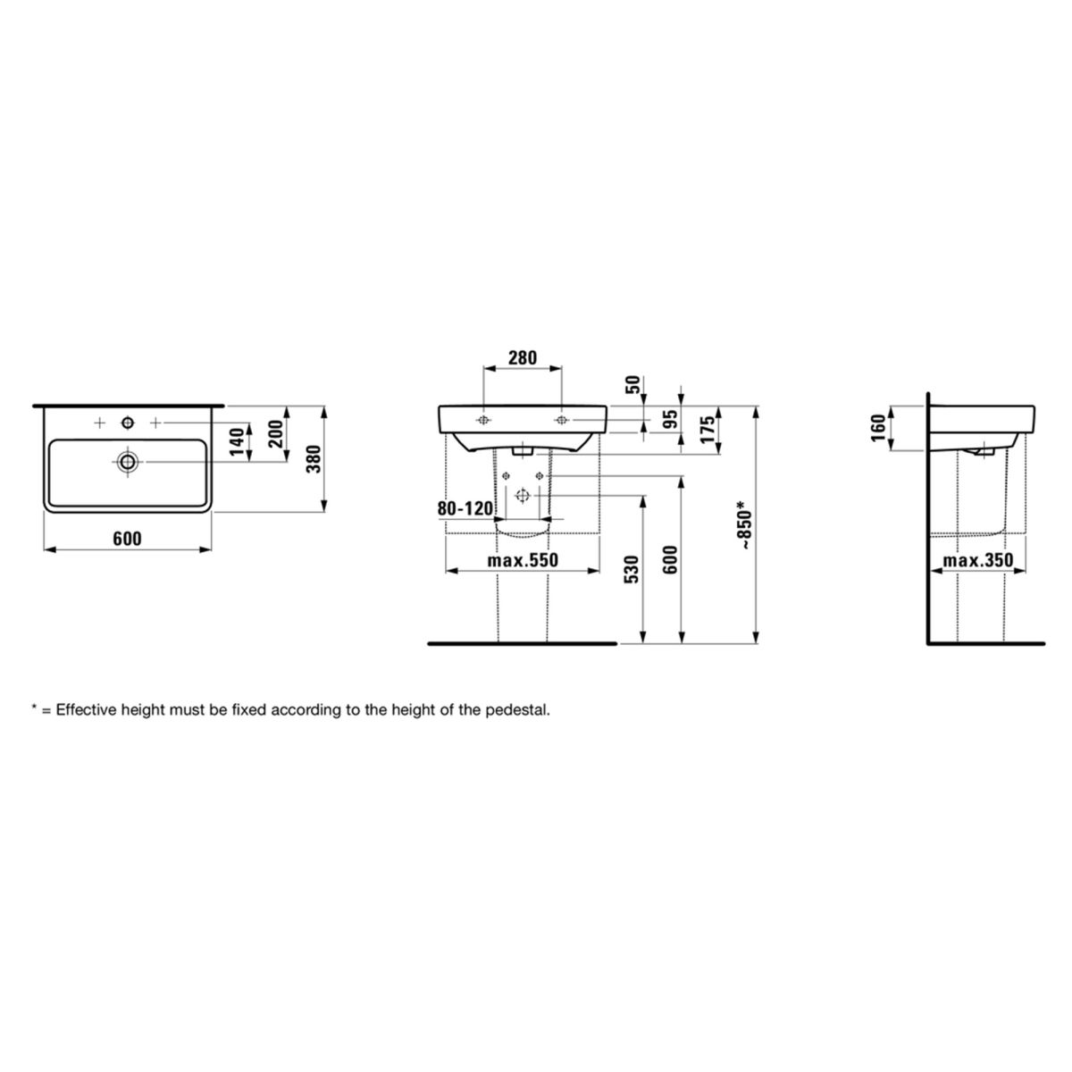 Laufen Pro S Waschbecken 60x38 cm rechteckig Klassisch weiß H8189590001041