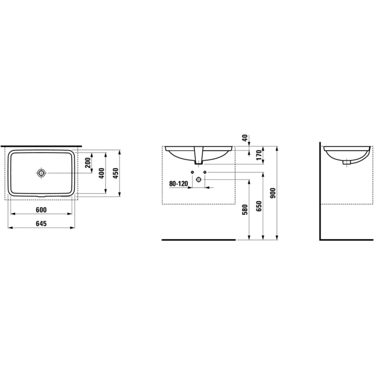 Laufen Pro S Waschbecken 60x40 cm rechteckig Unterbauwaschbecken weiß H8119650001091