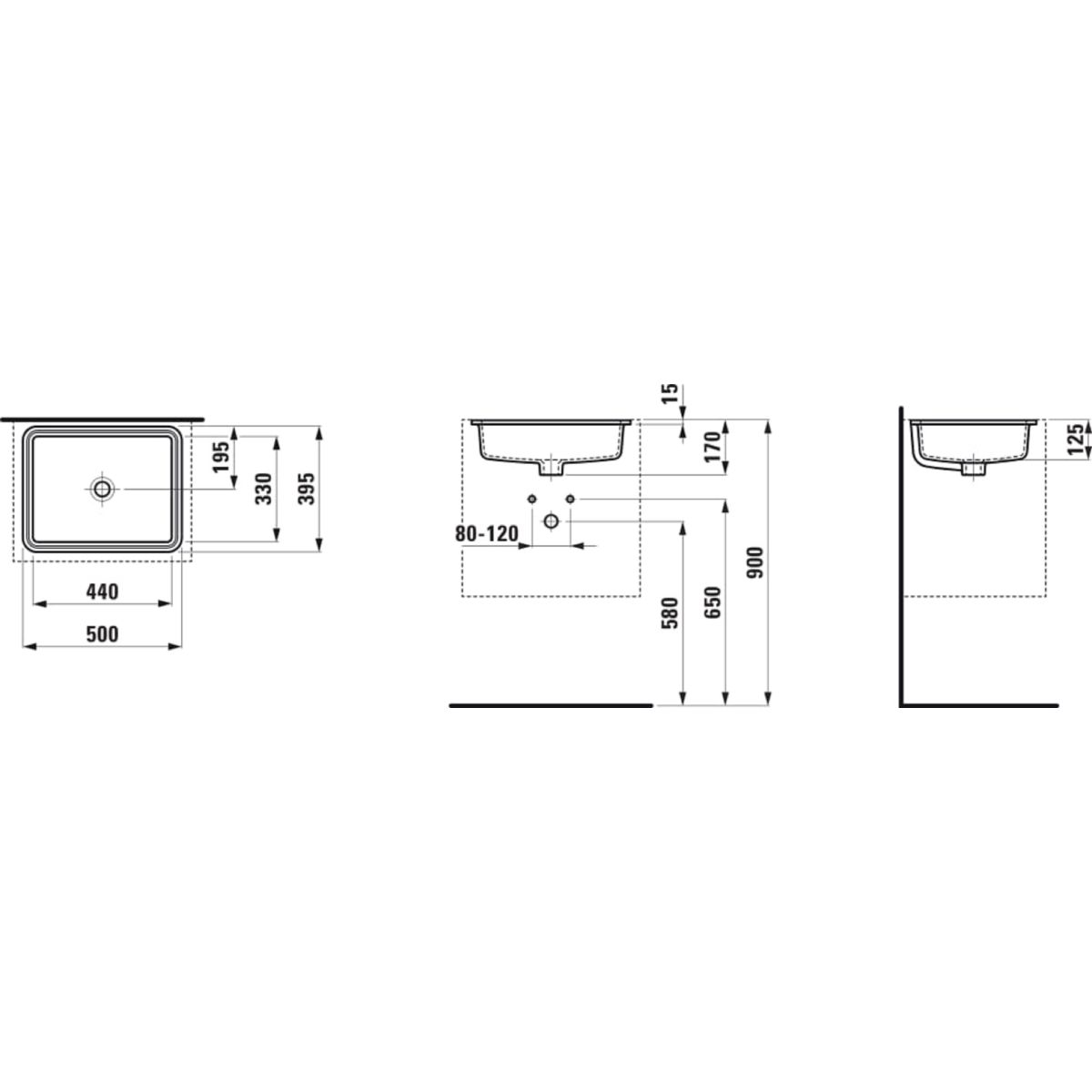 Laufen Savoy Waschbecken 44x33 cm rechteckig Unterbauwaschbecken weiß H8189487571551
