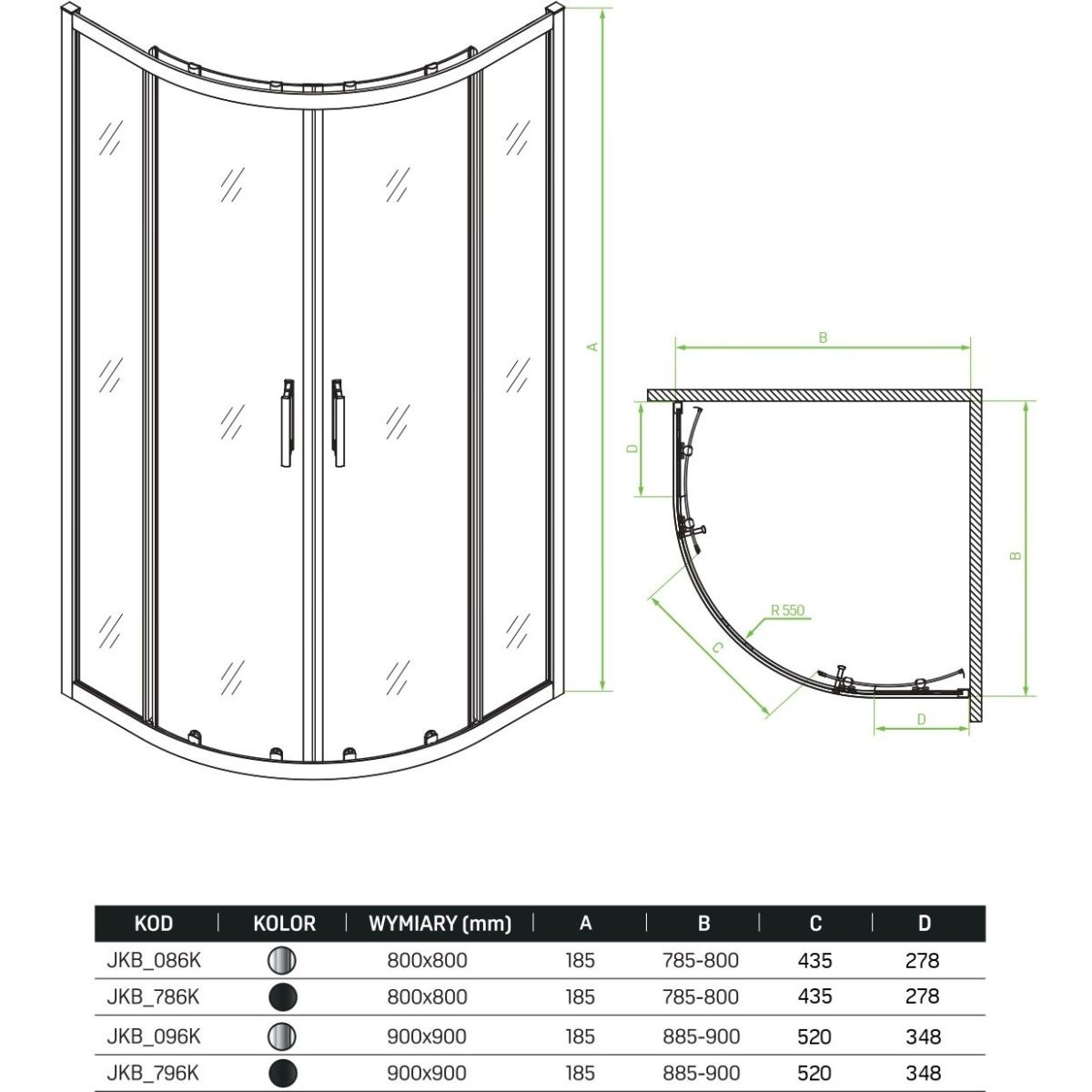 Laveo Bresso Dusche 80x80 cm halbrund chrom Glanz/durchsichtiges Glas JKD_086Z