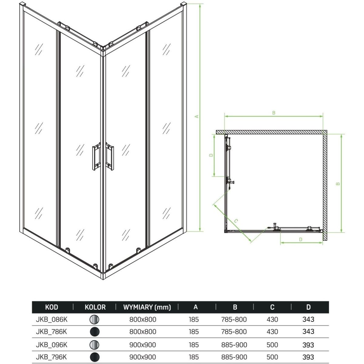 Laveo Bresso Dusche 90x90 cm quadratisch schwarz Matte/durchsichtiges Glas JKD_796K