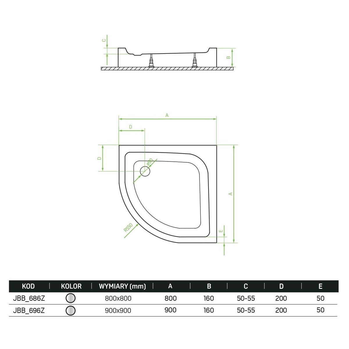 - Radius: 550 mm