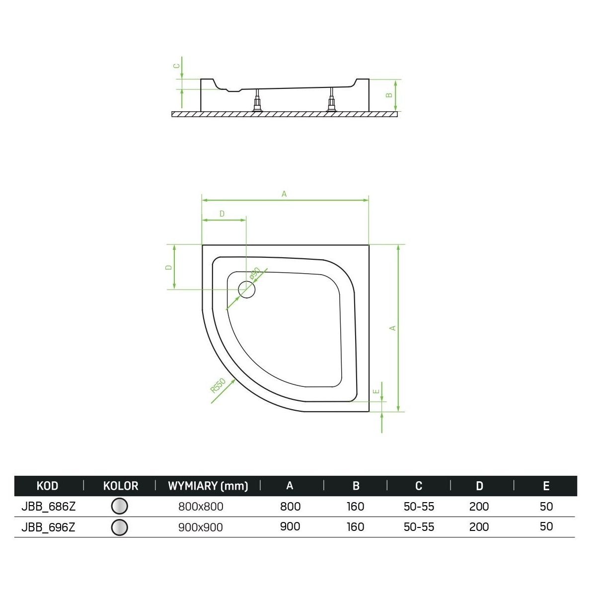 Laveo Bresso Kabine mit Duschwanne 90x90 cm halbrund schwarz Matte/durchsichtiges Glas JKDD796Z
