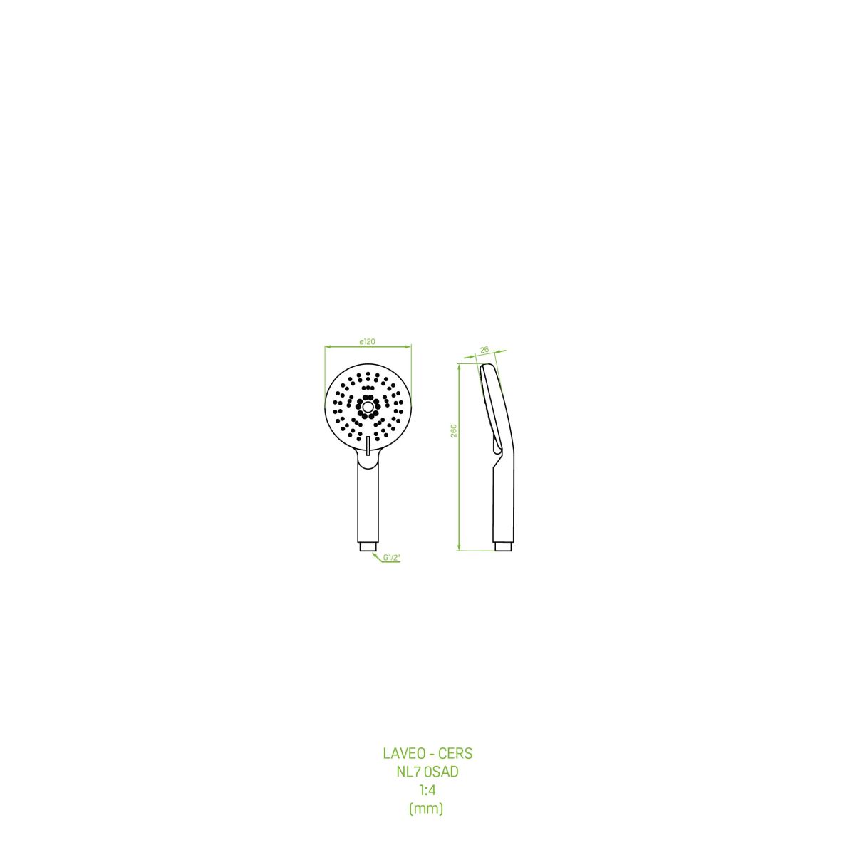 - Abmessungen der Handbrause: 260 x 120 mm