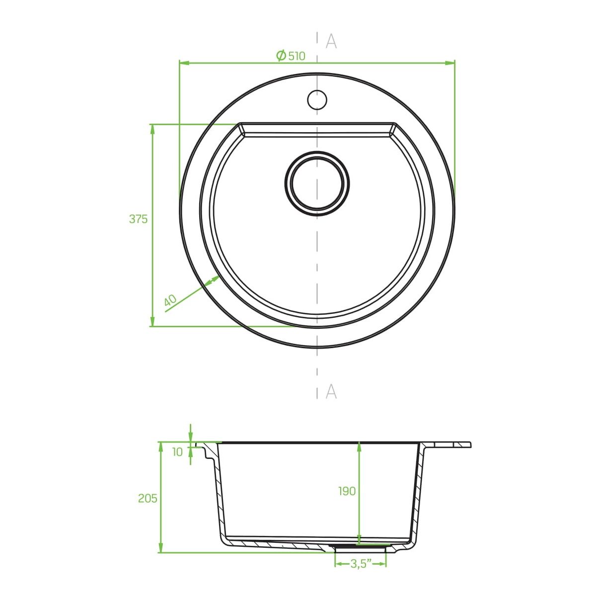 Runde Spüle mit Rand aus der Serie Dafne.