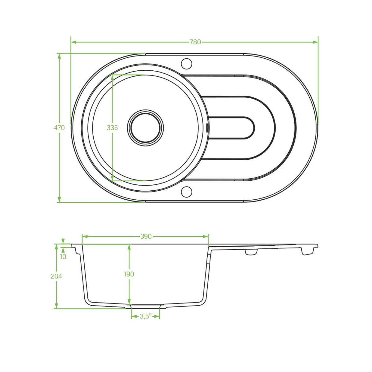 - 3,5-Zoll-Abfluss