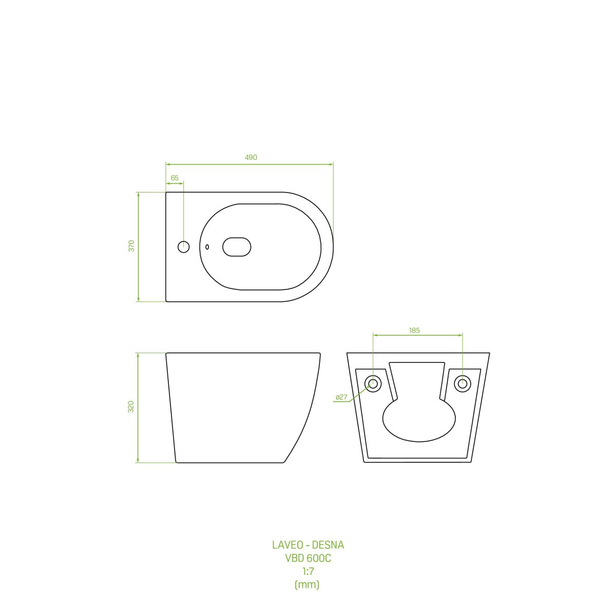 Laveo Desna bidet hängend weiß VBD600C