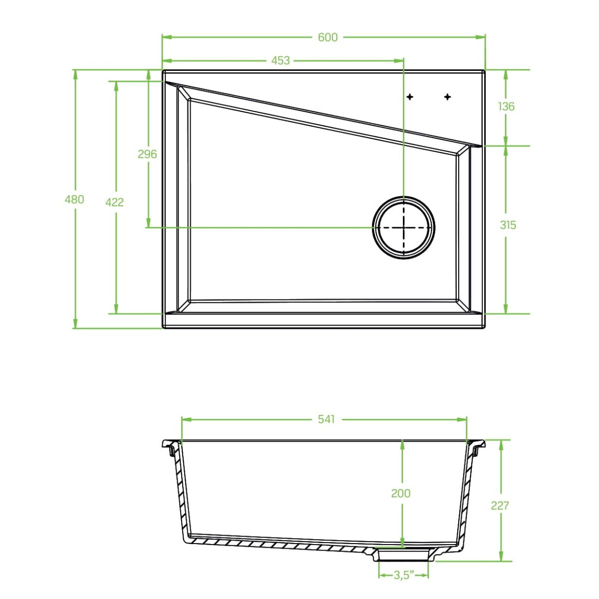 Laveo Grenada Granitspüle 60x48 cm schwarz SBG710T
