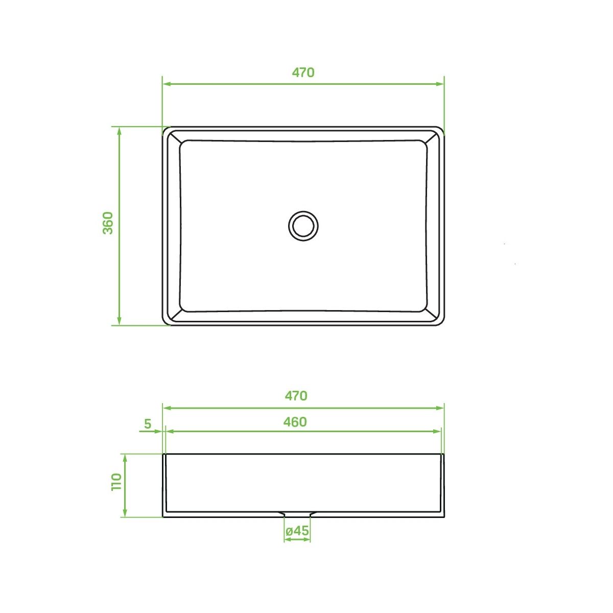 Kvadrato Waschbecken für Aufsatzmontage 47 x 36 cm