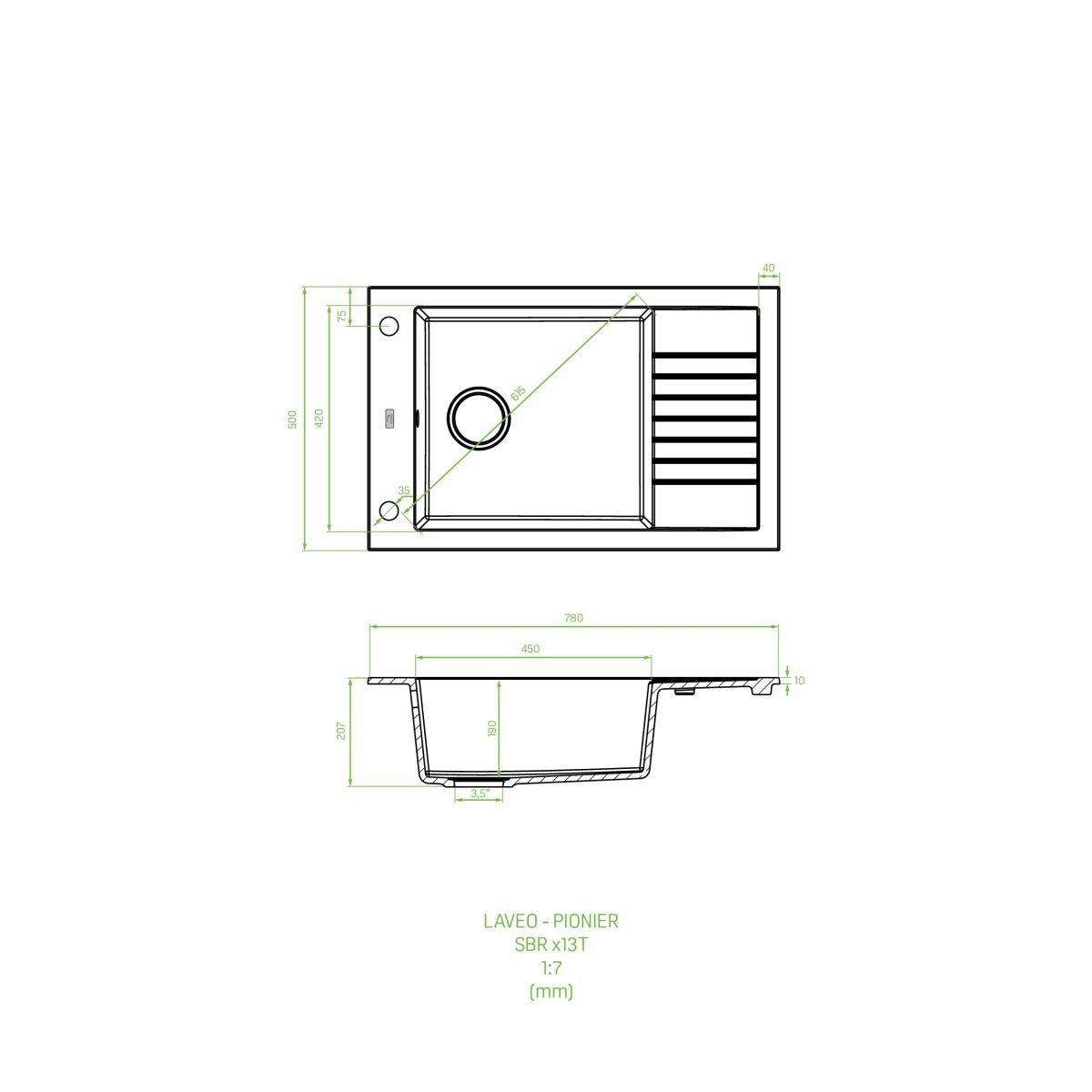 Laveo Pionier Granitspüle 78x50 cm schwarz SBR713T