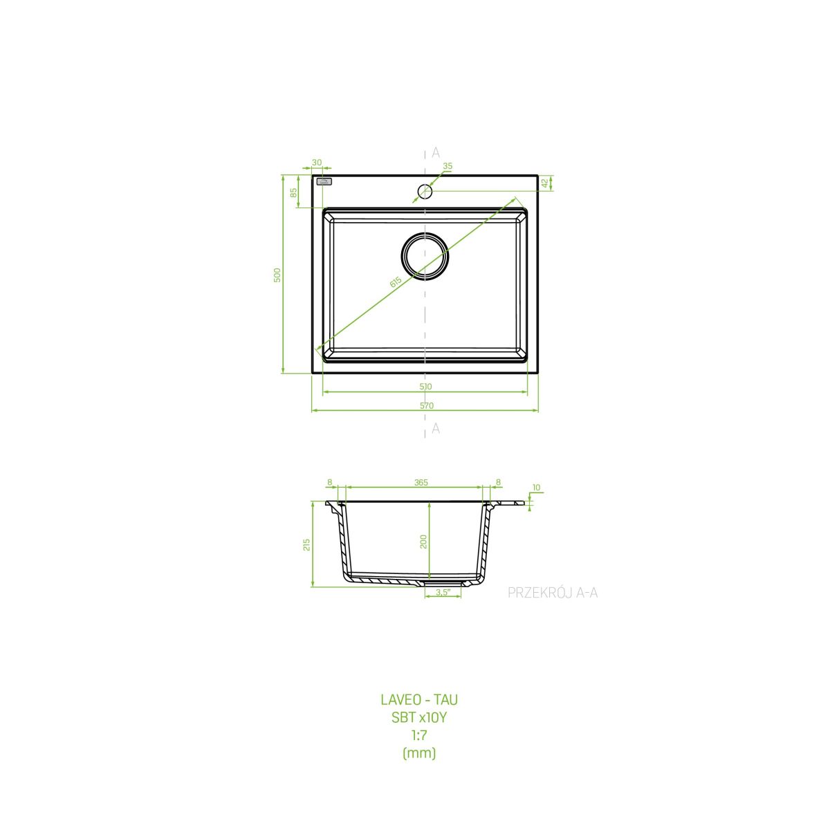 Laveo Tau granitspüle 57x50 cm grau/graphit/onyx SBT510Y