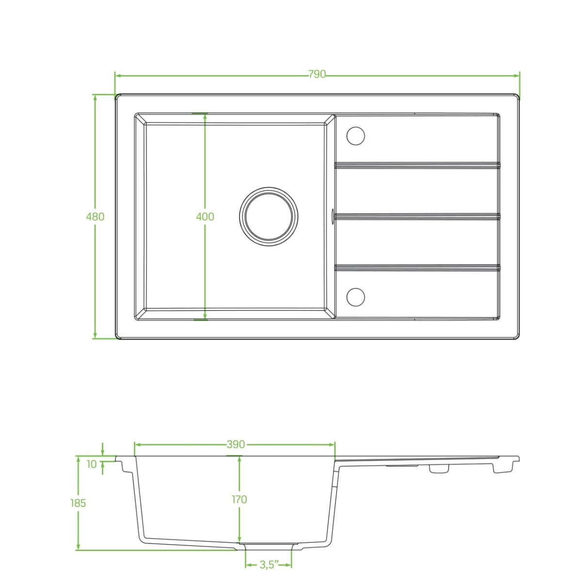 - 3,5-Zoll-Abfluss