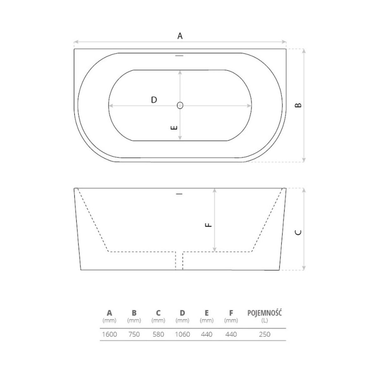 LaVita Caldera Wandmontierte Badewanne 160x75 cm oval weiß 5900378319085