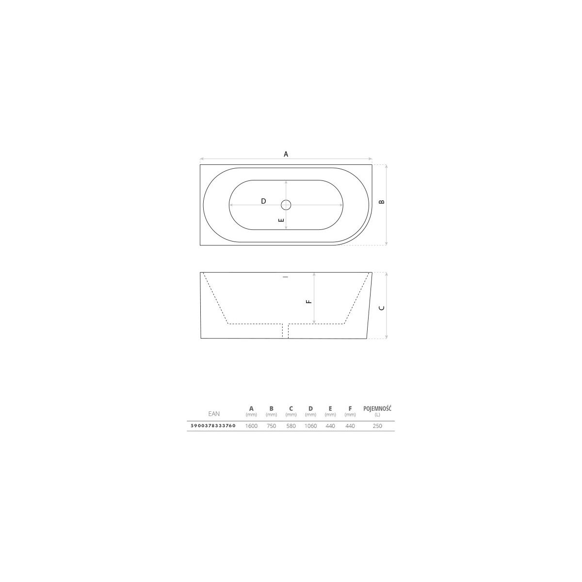 LaVita Caldera Wandmontierte Badewanne 160x75 cm rechteckig weiß 5900378333760