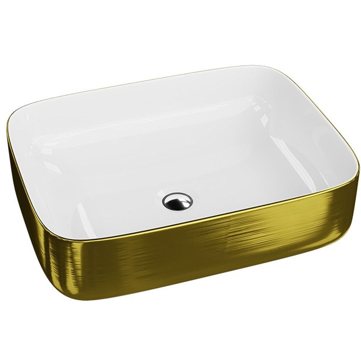 LaVita Galera Waschbecken 50.5x40 cm rechteckig Aufsatzwaschbecken weiß-gold 5900378325741