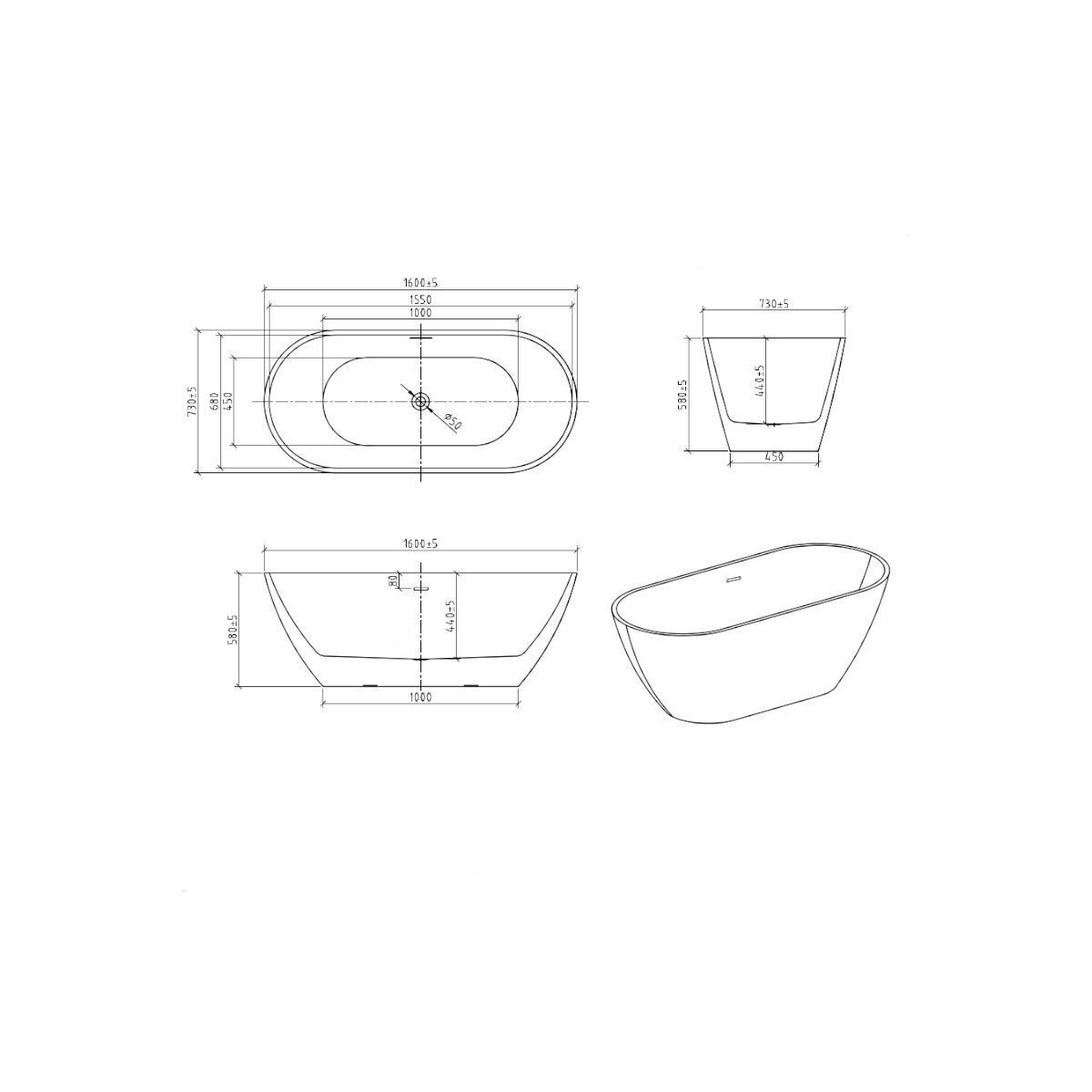 LaVita Irun Freistehende Badewanne 160x73 cm oval weiß 5900378345138