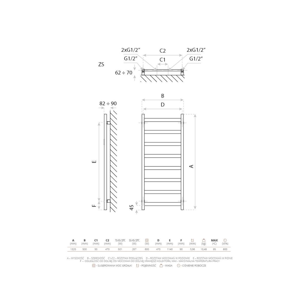 - Abmessungen: 1320 x 500 mm
