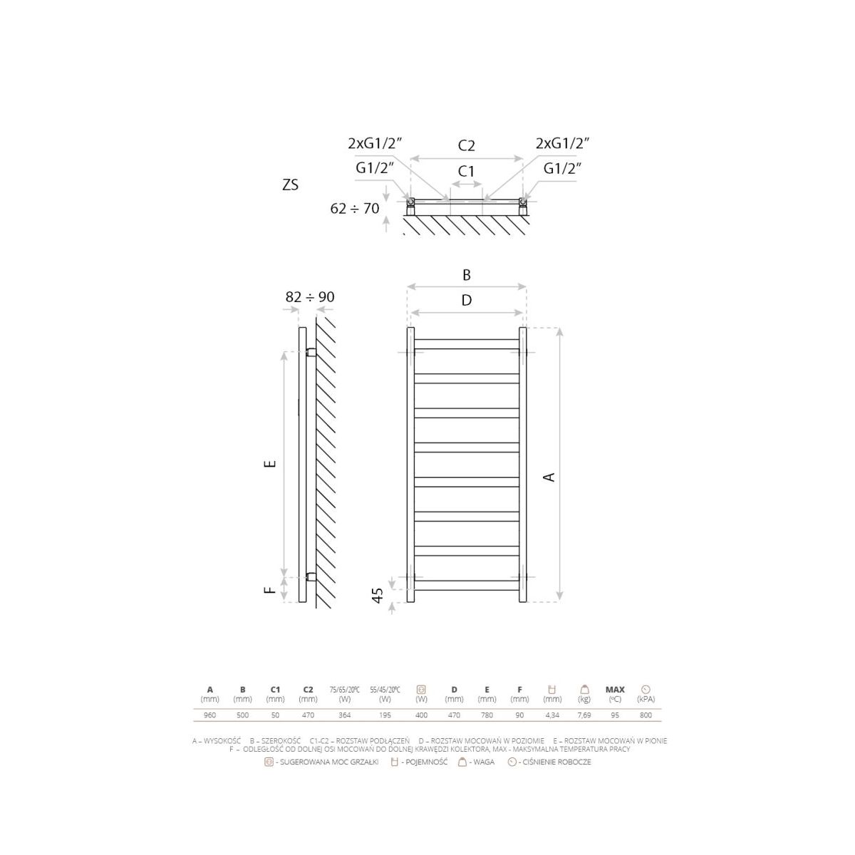 - Leistung 55/45/20 °C: 195 W