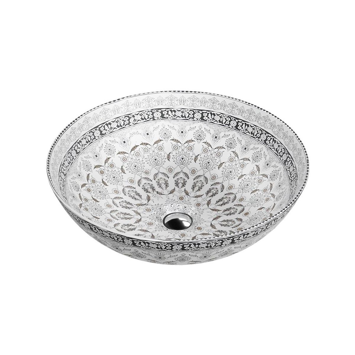 LaVita Rosa Waschbecken 40x40 cm rund Aufsatzwaschbecken weiß-schwarz-grauer Stein 5900378334286