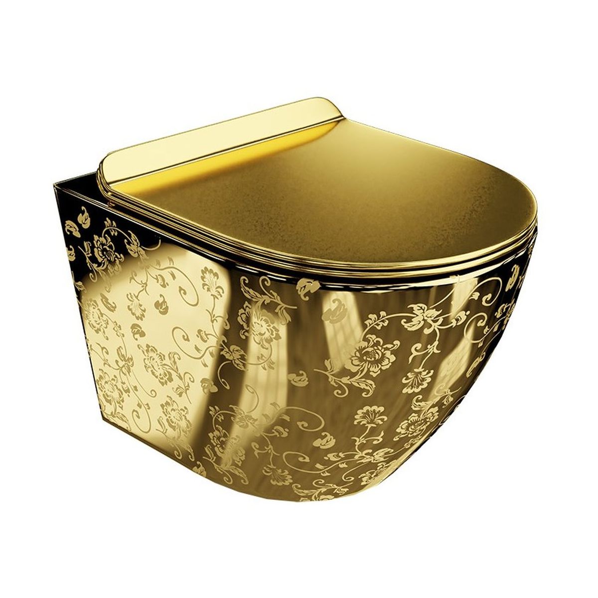 LaVita Sofi Slim WC-Becken mit Absenkautomatik-Sitz hängend Spülrandlos gold Glanz 5900378326526