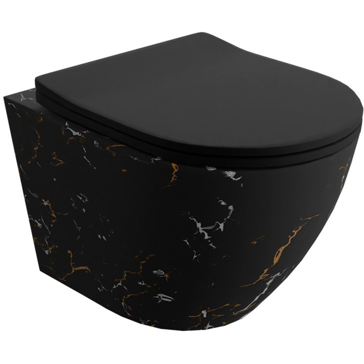 LaVita Sofi Slim WC-Becken mit Absenkautomatik-Sitz hängend Spülrandlos schwarz Matte Steinimitation 5900378326502