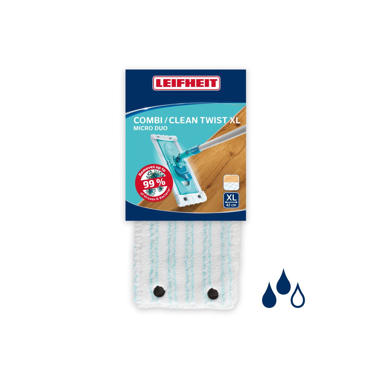 Der Micro-Duo-Aufsatz für den Mopp Combi XL der Marke Leifheit besteht aus saugfähiger Mikrofaser. Er erleichtert das effektive Aufnehmen von Schmutz und Wasser. Er erfüllt seine Aufgabe und sorgt für hundertprozentige Zufriedenheit bei der Verwendung. Es lohnt sich immer, einen Ersatzaufsatz vorrätig zu haben.