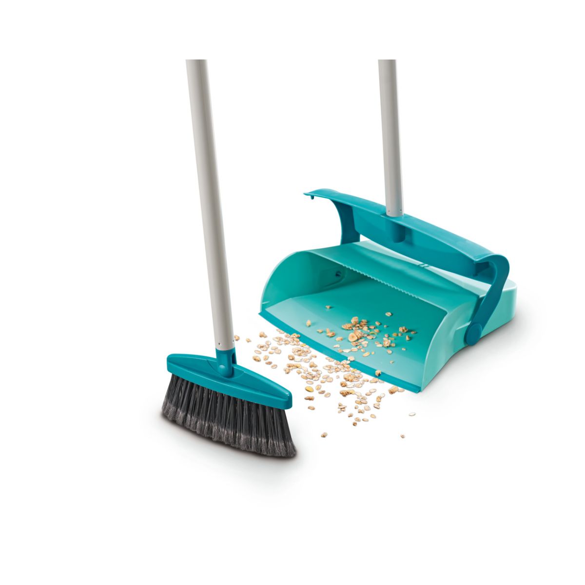 Das Set mit Stiel und verschließbarer Kehrschaufel der Marke Leifheit ermöglicht es Ihnen, Schmutz nicht nur bequem zusammenzufegen, sondern ihn auch in den Mülleimer zu befördern, ohne dass er unterwegs verstreut wird. Die Stiele von Kehrschaufel und Handfeger sind aus hochwertigem Stahl gefertigt, während die übrigen Teile aus strapazierfähigem Kunststoff bestehen. Die Bürste verfügt über Borsten mit gespaltenen Enden, wodurch beim Kehren der gesamte Schmutz gründlich aufgenommen wird, sowie über ein bewegliches Gelenk, das dafür sorgt, dass die Borsten immer perfekt am Boden anliegen. Die große Kehrschaufel schließt sich sofort, sobald sie vom Boden abgehoben wird, und verschließt den gesamten darin enthaltenen Schmutz luftdicht, sodass er bequem in den Mülleimer transportiert werden kann. Zusätzlich verfügt die Kehrschaufel über eine Kante zum Reinigen der Bürste und eine Gummiliste, die das Kehren erleichtert.