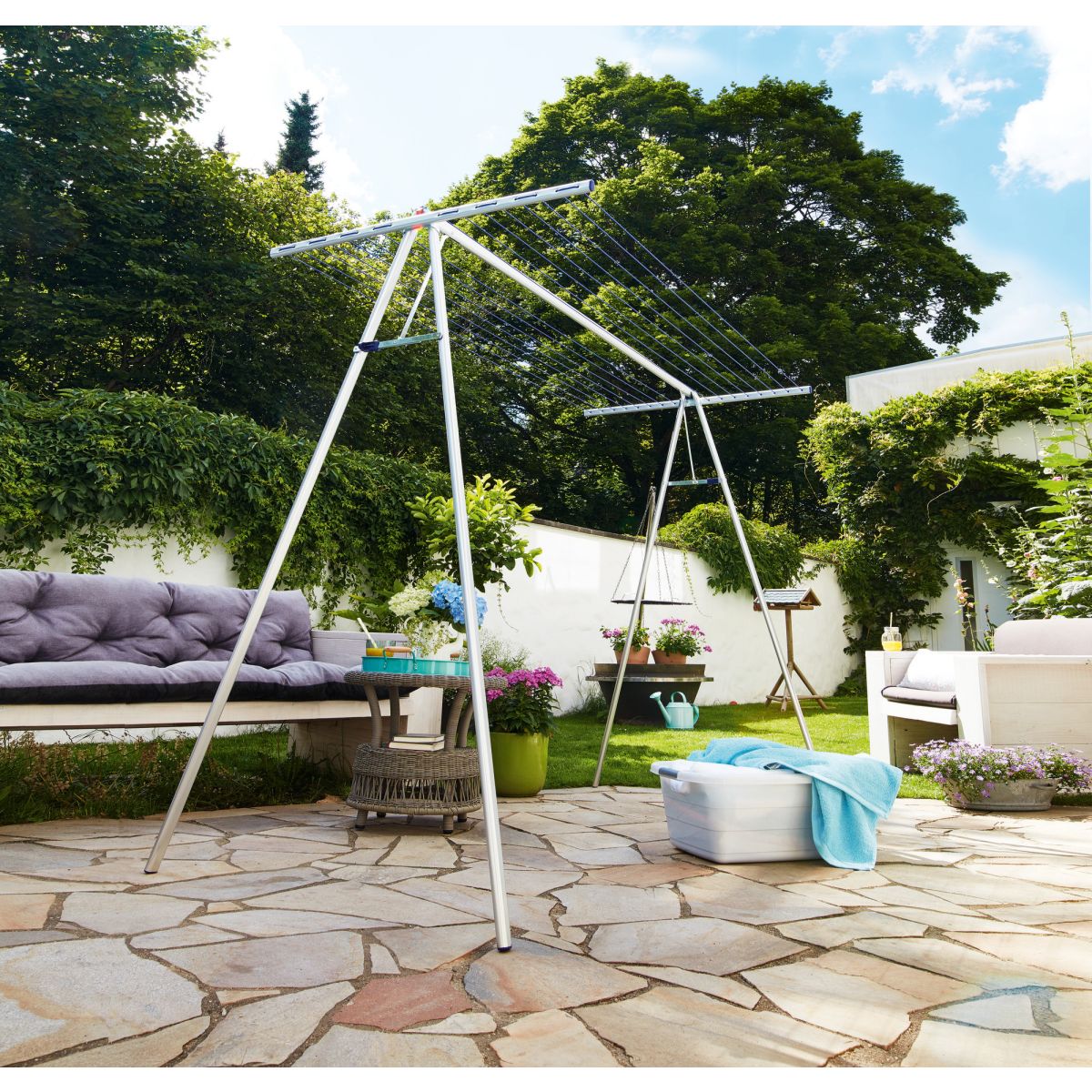 Der Wäscheständer Linomaxx 210 von Leifheit garantiert hervorragende Stabilität, einfache Handhabung und außergewöhnlichen Komfort beim Aufhängen selbst großer Kleidungsstücke, die durch den Kontakt mit dem Boden niemals verschmutzen. Dieses Modell ist aus hochwertigem Stahl gefertigt, witterungsbeständig und temperaturbeständig. Die Leinen wurden verstärkt, was das Risiko eines Bruchs erheblich verringert. Die verwendeten Materialien und die Konstruktion machen den Wäscheständer sehr stabil und außergewöhnlich leicht.
