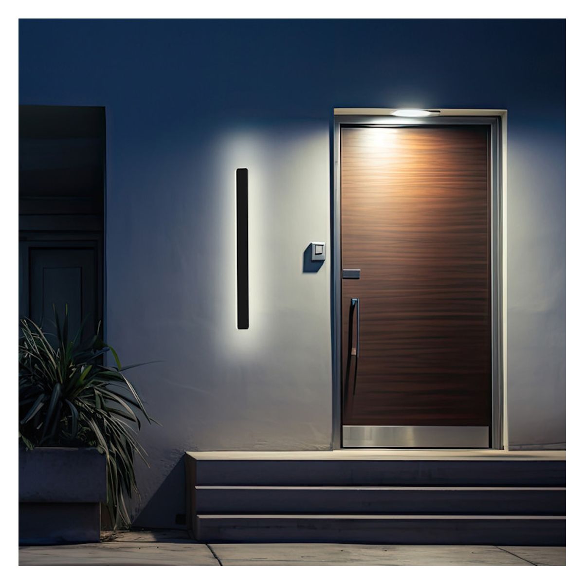 Die Wandleuchten von Bodo sind moderne Wandleuchten, die minimalistisches Design mit fortschrittlicher LED-CCT-Technologie verbinden. Die Leuchten sind aus schwarzem Metall gefertigt. Auf der Vorderseite präsentiert sich die Leuchte als elegantes, schwarzes Rechteck, das durch eine eingebaute LED-Leuchte dezent beleuchtet wird. Die LED-CCT-Technologie ermöglicht die Auswahl der Lichtfarbe, wodurch die Beleuchtung an die unterschiedlichen Bedürfnisse des Innenraums angepasst werden kann.