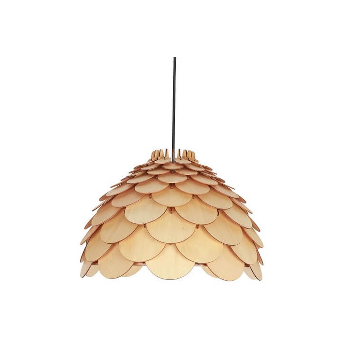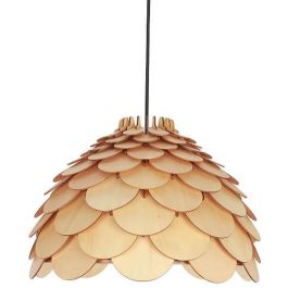 Die große Hängelampe Burgo zeichnet sich durch ihren originellen Stil aus. Der Lampenschirm besteht aus vielen dünnen Holzelementen. Das Ganze hängt an einem Metallgestell. Sie eignet sich ideal für die Küche oder das Esszimmer.