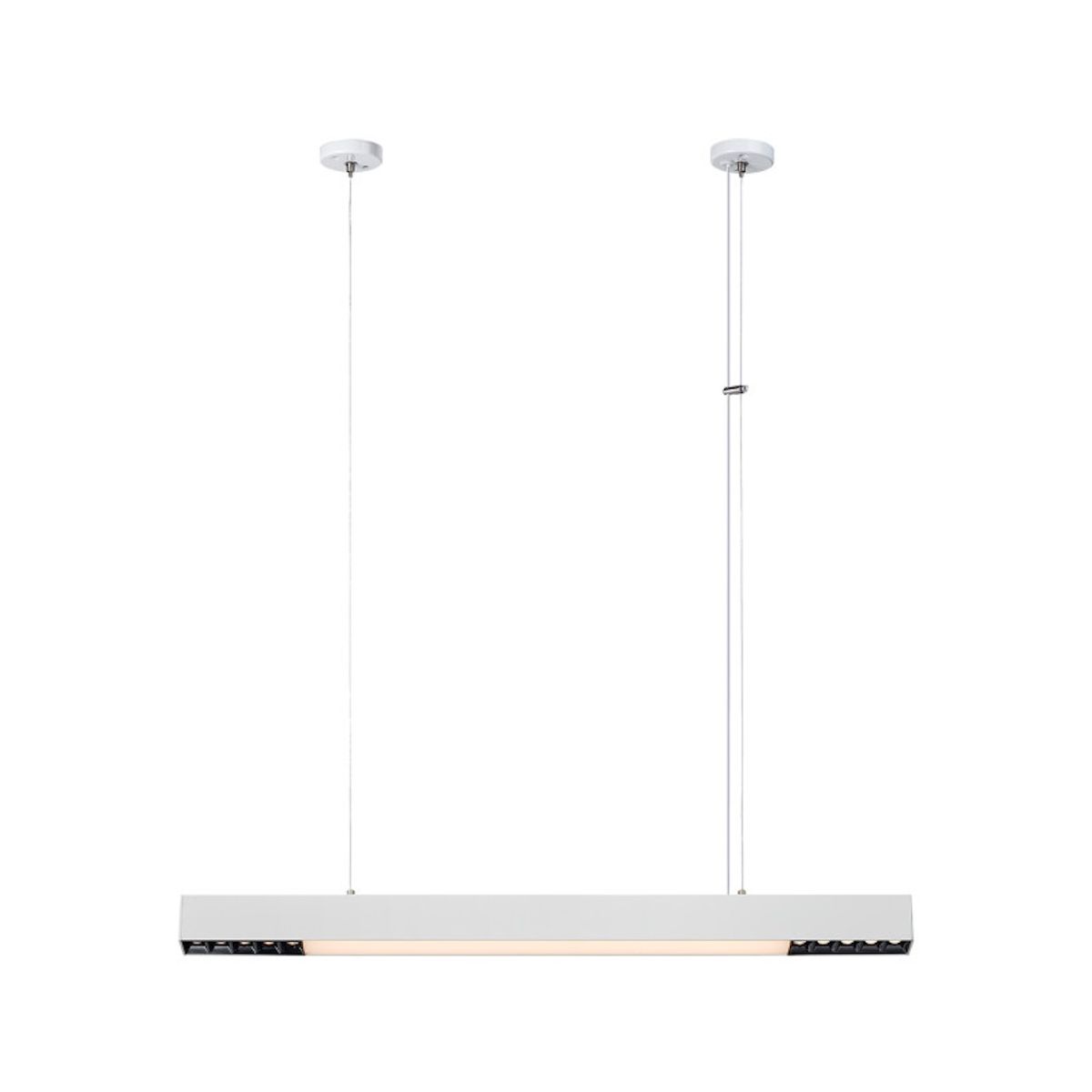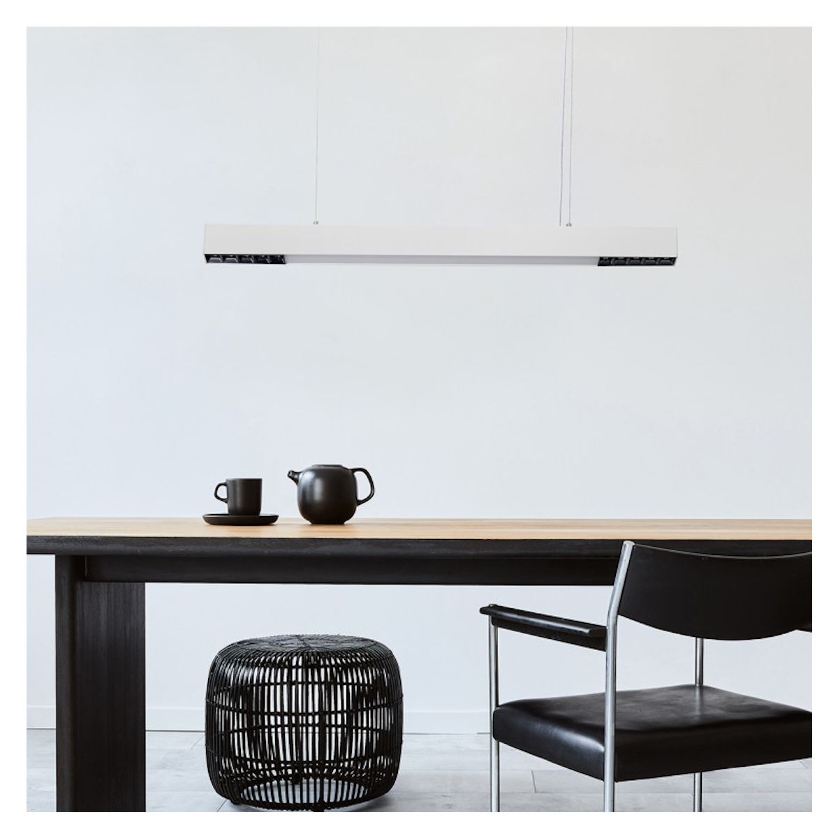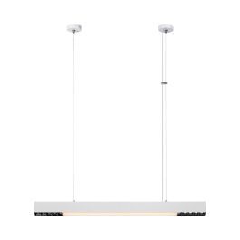 Die Cali M LED CCT-Lampe verbindet modernes Design mit fortschrittlicher Technologie. Sie besteht aus strapazierfähigem, weißem Aluminium und hat die Form eines länglichen Quaders, der Miniaturstrahler mit einer glatten Acrylblende verbindet. Dadurch dient die Leuchte nicht nur als Lichtquelle, sondern auch als attraktives Dekorationselement. Sie wird an verstellbaren Seilen mit einer maximalen Länge von 120 cm aufgehängt, sodass die Höhe an individuelle Bedürfnisse angepasst werden kann. Die LED-CCT-Technologie ermöglicht die Einstellung der Lichtfarbe, sodass die Beleuchtung an jede Situation und Stimmung angepasst werden kann. Die Lampe wird über die Tuya Smart-App bedient, wodurch die Beleuchtung von jedem Ort im Haus aus einfach und bequem gesteuert werden kann. Sie hat die Schutzklasse IP20, die den Schutz vor dem Eindringen von Gegenständen mit einem Durchmesser von mindestens 12 mm in das Innere der Lampe gewährleistet. Cali M LED CCT ist die ideale Lösung für Menschen, die moderne Technologien und ein schlichtes, elegantes Design schätzen. Cali LED CCT ist die ideale Lösung sowohl für Wohn- als auch für Gewerbeflächen.