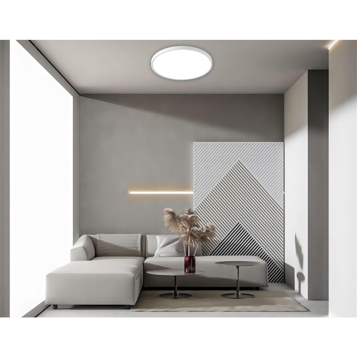 Die moderne, weiße Deckenleuchte California mit einem Durchmesser von 48 cm und einer Höhe von 2,5 cm eignet sich sowohl für zu Hause als auch für das Büro. Sie besteht aus hochwertigem Kunststoff und zeichnet sich durch eine schlichte, elegante Form aus, die perfekt zu vielen Einrichtungsstilen passt. Dank der milchigen Blende sorgt die Deckenleuchte für eine weiche und gleichmäßige Lichtverteilung und schafft eine angenehme Atmosphäre in jedem Raum. Die Schutzklasse IP20 garantiert die Sicherheit bei der Verwendung in Innenräumen, was sie zur idealen Wahl für trockene Räume macht. Ein weiterer Vorteil ist die Möglichkeit, vor der Montage die bevorzugte Lichtfarbe (warm, kalt oder neutral) einzustellen, wodurch die Beleuchtung an individuelle Bedürfnisse und Vorlieben angepasst werden kann. Dank seiner geringen Höhe von 2,5 cm ist der runde Deckenfluter California die ideale Lösung für niedrige Räume, in denen jeder Zentimeter Höhe zählt. Durch seine schlichte Form fügt er sich perfekt in verschiedene Innenräume ein, sowohl moderne als auch klassische.