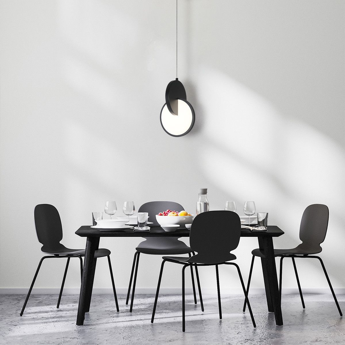 Die Hängelampe aus der Circlo-Kollektion ist eine moderne und elegante Leuchte, die sich perfekt für minimalistische Innenräume eignet. Der Lampenschirm besteht aus zwei sich überschneidenden Kreisen. Einer der Kreise ist aus robustem Metall gefertigt und sorgt für Langlebigkeit und Stabilität der Konstruktion, während der andere aus Kunststoff besteht und von einem Aluminiumgehäuse umgeben ist. In das Kunststoffrad ist eine CCT-LED-Leuchte eingebaut.