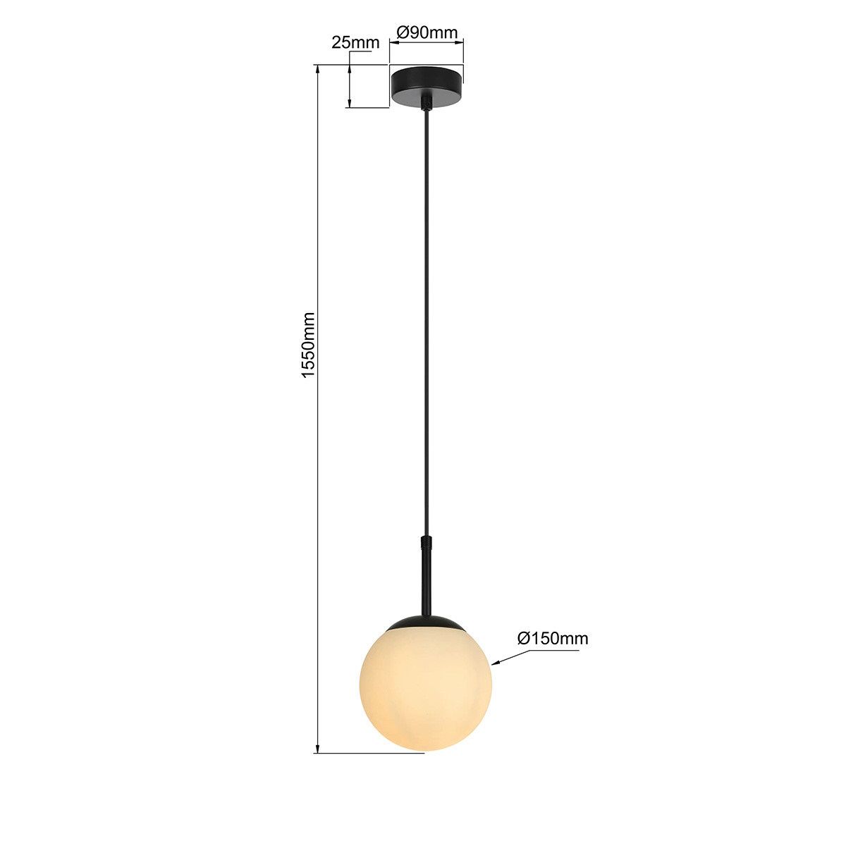 Die Hängelampe Dorado mit weißen Kugeln ist eine Kombination aus Schlichtheit, Stil und Funktionalität. Ihr Deckenaufsatz aus schwarzem Metall passt perfekt zum milchigen Glaslampenschirm, der das Licht sanft streut und so in jedem Raum eine gemütliche Atmosphäre schafft.