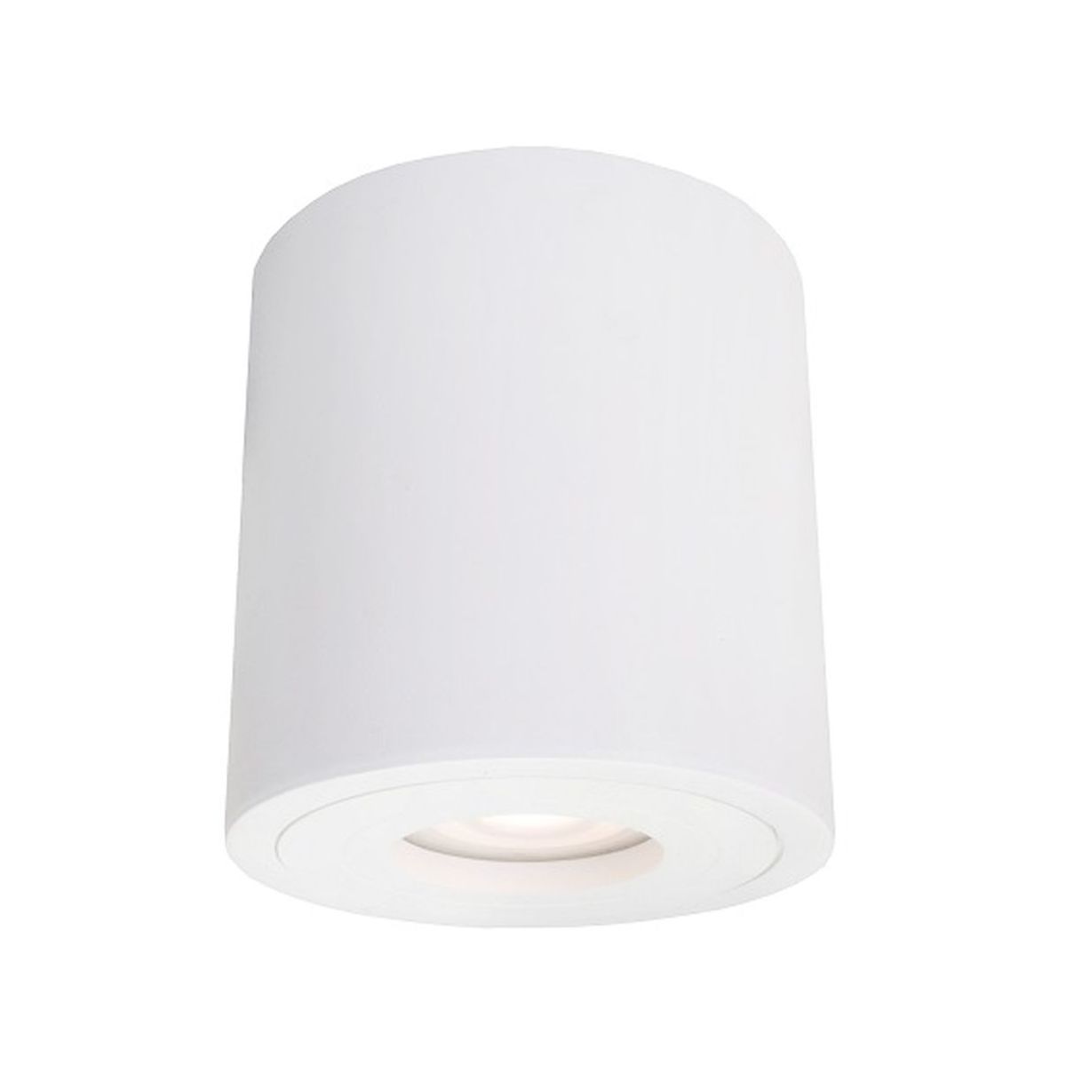 Die Deckenleuchte Faro XL in Weiß ist eine große Version der normalen Faro-Leuchte. Sie besteht aus Metall in Form eines Zylinders. Geeignet für Räume mit hoher Luftfeuchtigkeit wie Badezimmer, Keller und Terrassen.