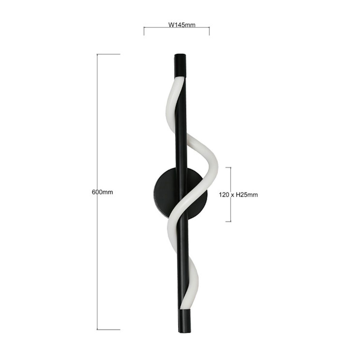 Die schwarze Wandleuchte Meleca ist eine moderne Wandbeleuchtung, die sich durch ihre elegante Form und hohe Verarbeitungsqualität auszeichnet. Die Konstruktion des Gestells und der runden Basis besteht aus Metall in einem universellen Schwarz. Der Lampenschirm in Form einer effektvollen, spiralförmig gewundenen Röhre besteht aus flexiblem Acryl. In seinem Inneren befindet sich eine integrierte LED-Lichtquelle mit einstellbarer Farbe (CCT), mit der die Lichttemperatur an die individuellen Bedürfnisse des Benutzers angepasst werden kann. Die Wandleuchte Meleca eignet sich sowohl als dekorativer Akzent im Wohnzimmer, Schlafzimmer oder Flur als auch als funktionale Zusatzbeleuchtung. Ihre moderne Form in Kombination mit dem goldenen Finish fügt sich harmonisch in moderne klassische, glamouröse oder moderne Einrichtungen ein. Die Meleca-Kollektion umfasst auch Hängelampen, mit denen sich einheitliche und effektvolle Lichtkompositionen in verschiedenen Bereichen des Innenraums schaffen lassen.