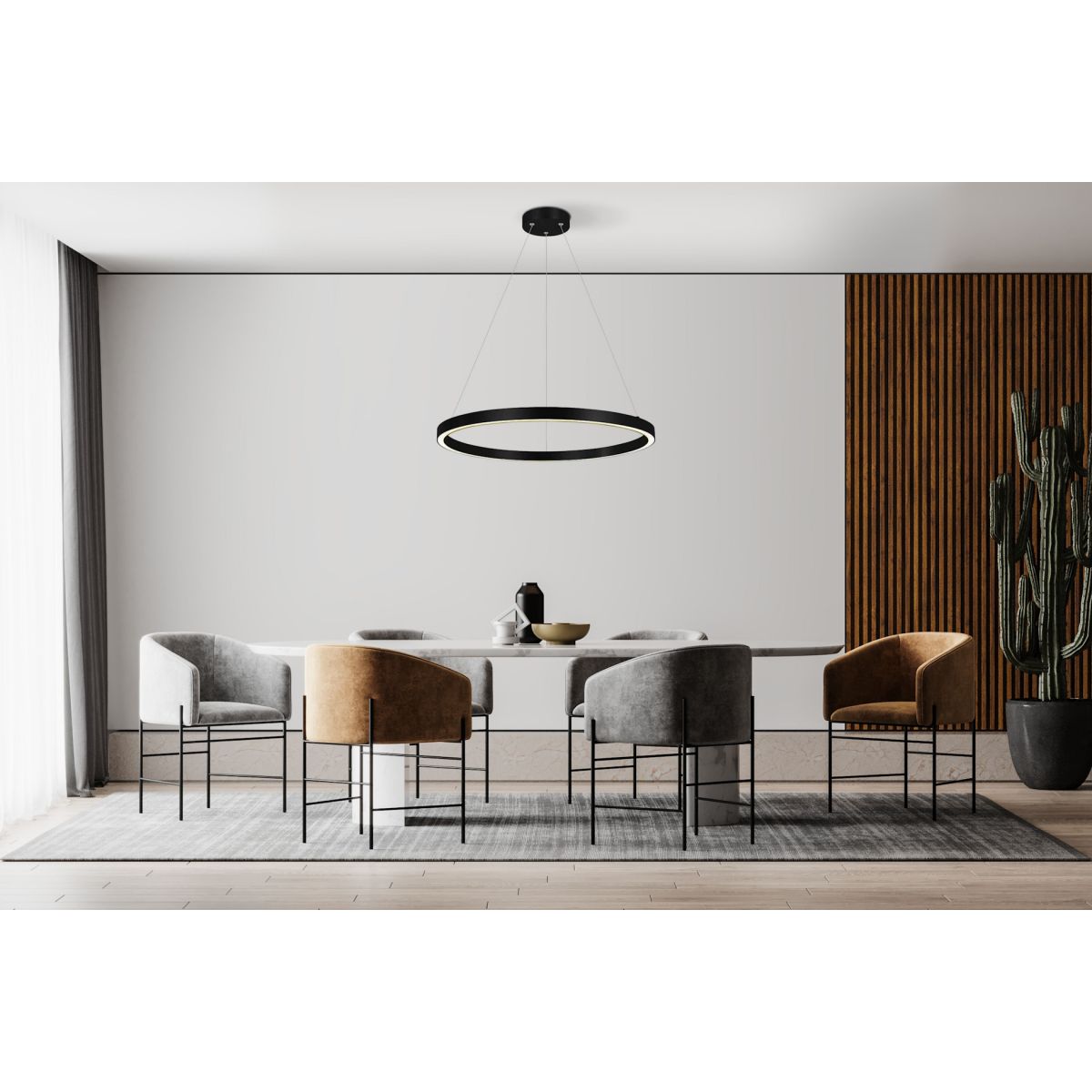 Eleganz, Minimalismus, Glamour – diese Begriffe passen am besten zu dem Beleuchtungsprodukt MIDWAY MAŁA CZARNA. Es handelt sich um eine Hängelampe, die durch ihr sehr minimalistisches Design besticht. Die MIDWAY-Lampe besteht aus einem schwarzen Metallkreis. Sie stört nicht die Gesamtgestaltung des Wohnzimmers, Esszimmers, Schlafzimmers oder eines anderen Raumes. Gleichzeitig beleuchtet diese Lampe mit ihrem eingebauten, warmen LED-Licht (3000 K) wunderschön. Industrielle, moderne und glamouröse Einrichtungen bilden den perfekten Rahmen für diese Hängelampe, die sowohl einzeln als auch in größerer Anzahl montiert eine gute Figur macht. Gold und Schwarz passen perfekt sowohl zu hellen Innenräumen, z. B. in Weiß, als auch zu dunklen, z. B. in Dunkelblau oder Rot. Wir laden Sie ein, sich mit allen MIDWAY-Lampenprodukten vertraut zu machen. Wenn Sie zwei verschiedene Größen dieses Beleuchtungsprodukts kaufen, können Sie eine einzigartige Beleuchtungskomposition z. B. in Ihrem Wohnzimmer erzielen.