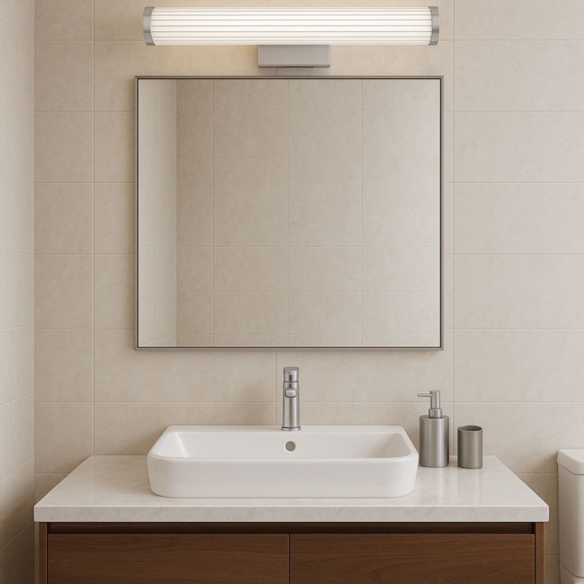 Abmessungen: Länge 45 cm, Höhe 12 cm, Durchmesser 6 cm – ideal für die Montage über einem Spiegel.